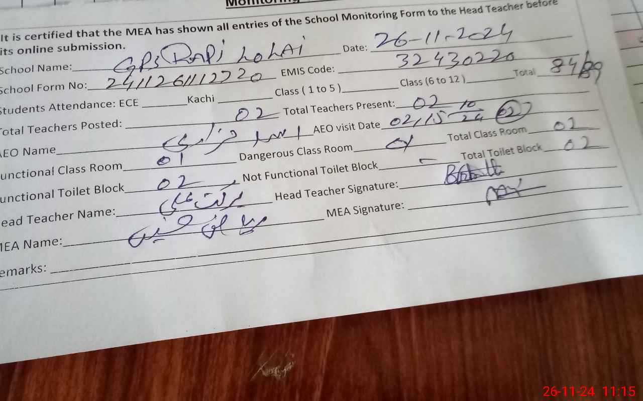 | Certified that this School was Inspected by the Undersigned MEA/DMO Today and the Information Stated Above is as Per Record. | |||||