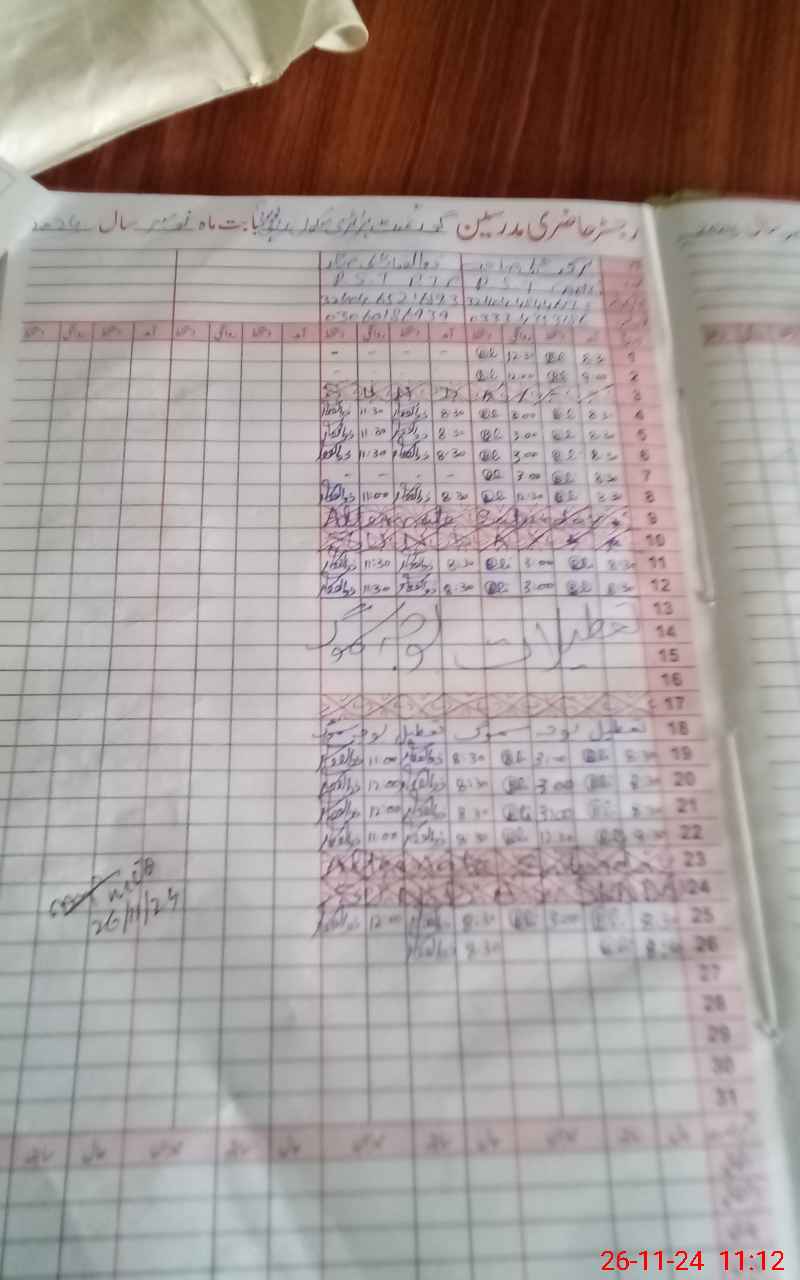 | CNIC | Full Name | Designation | R/C | Absence During Last Calender Month |