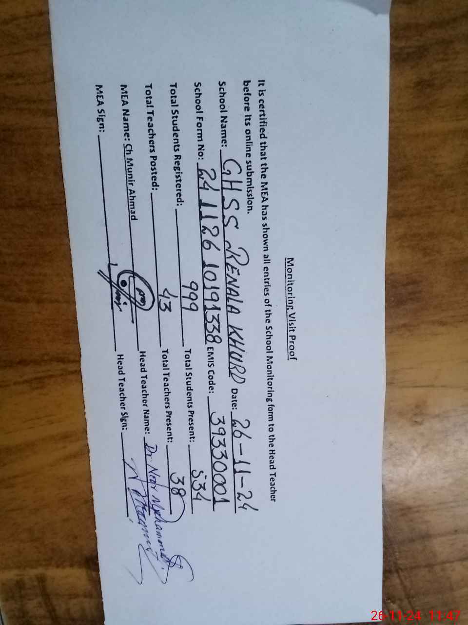 | EMIS Code: 39330001 | Name of School: GHSS RENALA KHURD | |||