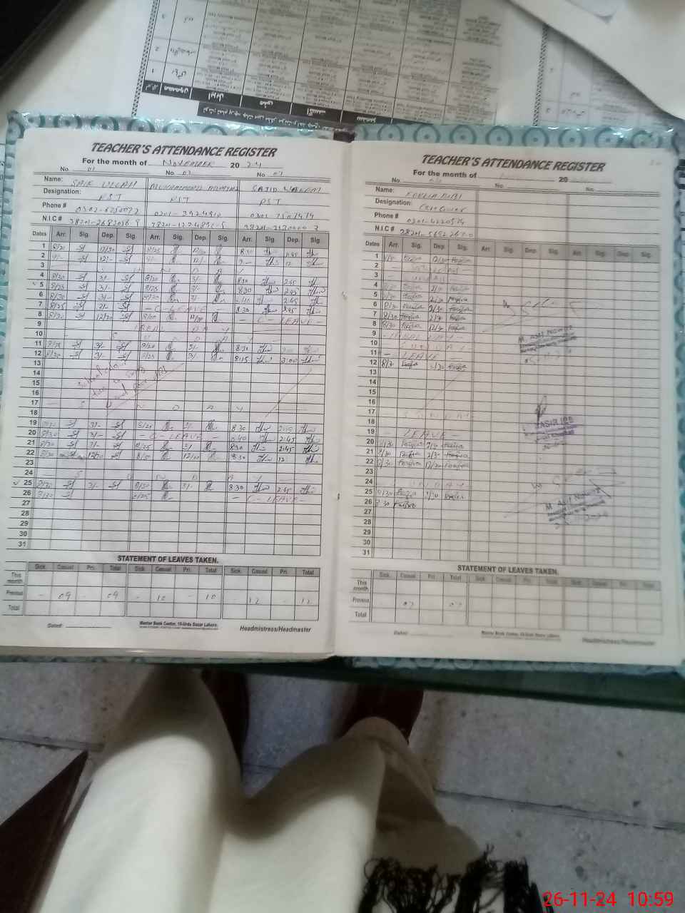 | CNIC | Full Name | Designation | R/C | Absence During Last Calender Month |