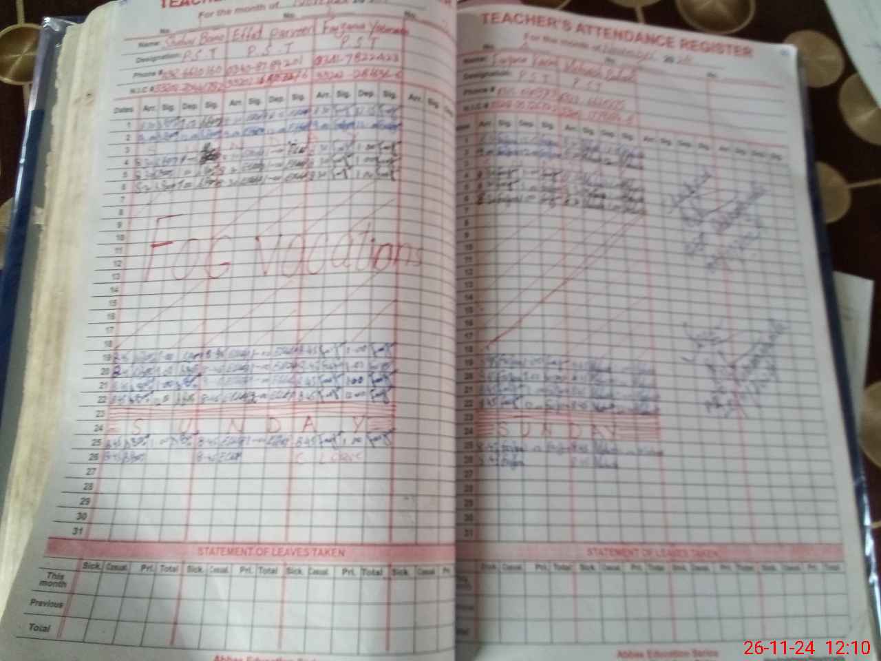 | CNIC | Full Name | Designation | R/C | Absence During Last Calender Month |