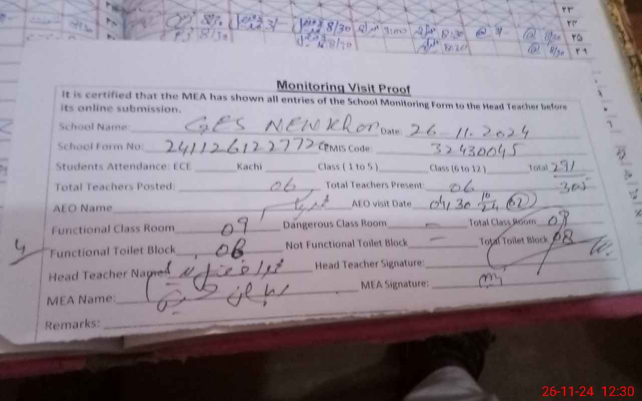 | EMIS Code: 32430045 | Name of School: GHS NEW KHAN | |||