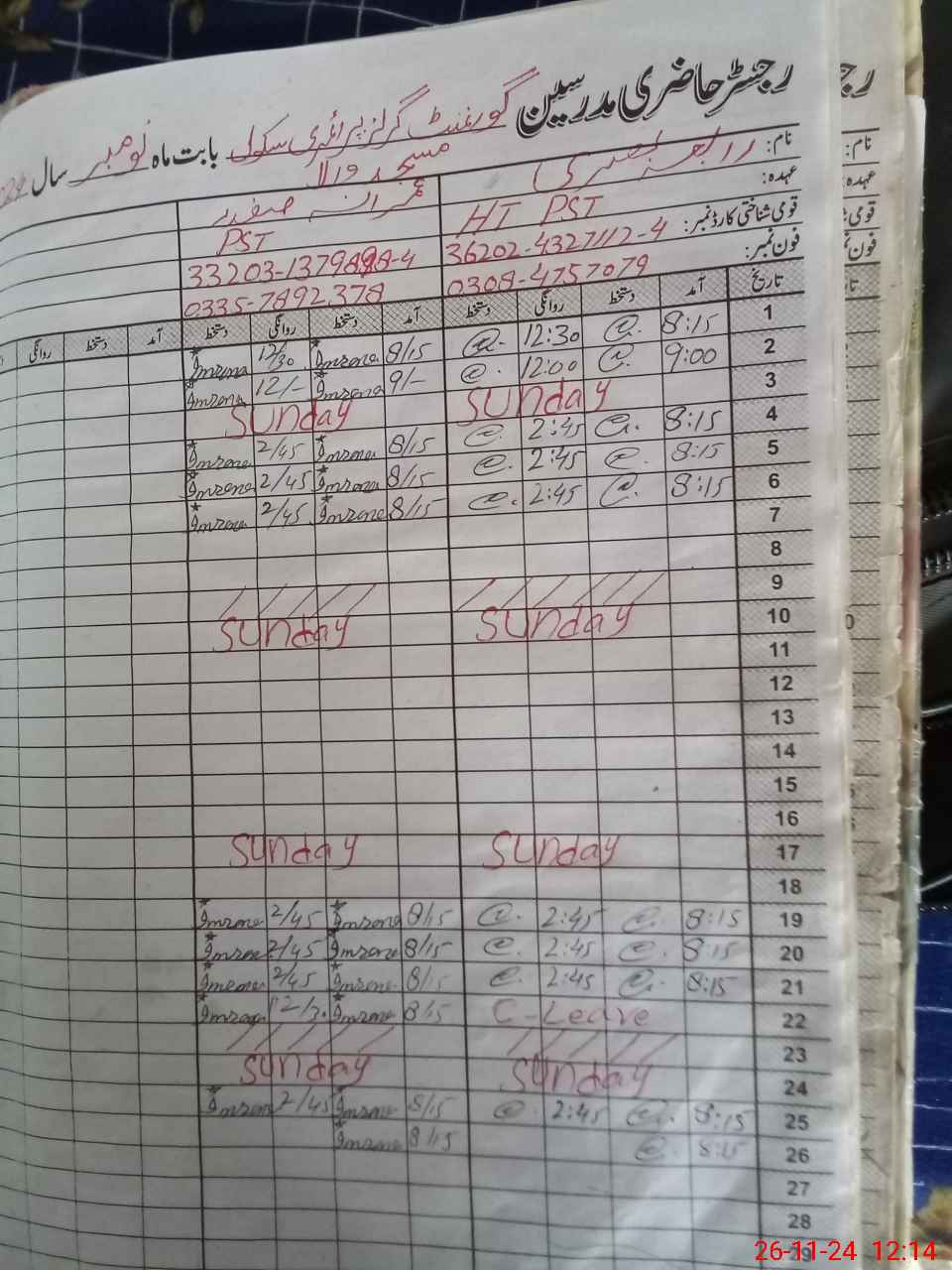 | Name: RA**** BA**** Designation: (School Headmaster's/Headmistress's) PST Phone/Cell Number: 03**** |
