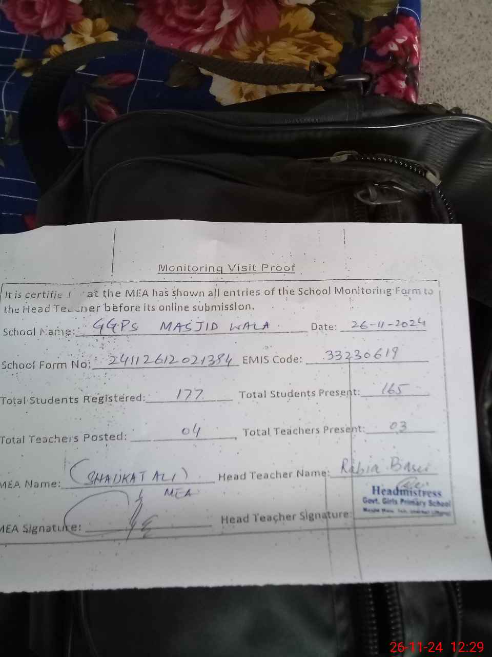 | EMIS Code: 33230619 | Name of School: GGPS MASJID WALA | |||