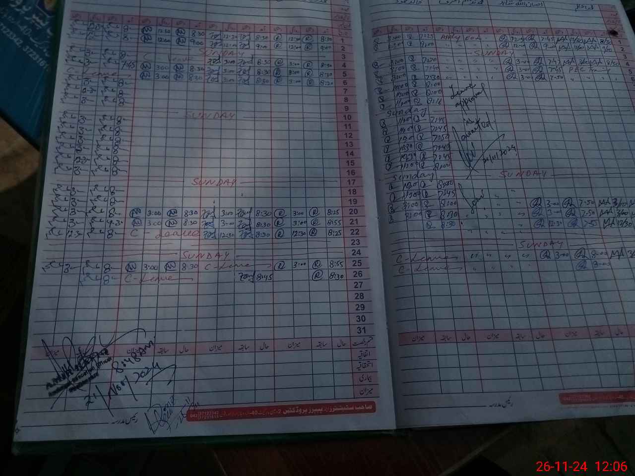 | CNIC | Full Name | Designation | R/C | Absence During Last Calender Month |