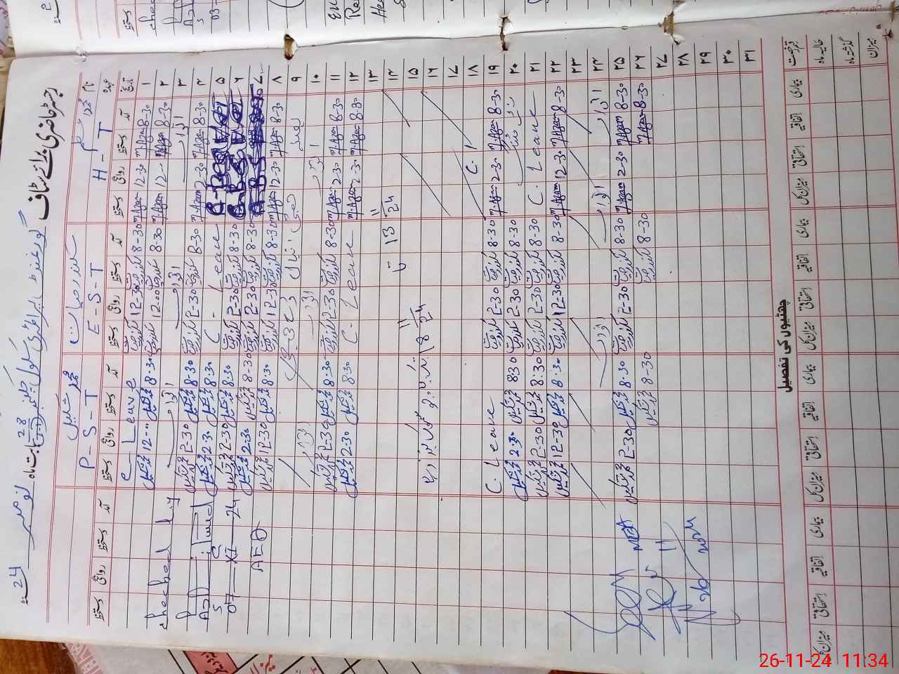 | Leave | Duty | Absent | Maternity | Medical | Ex- Pak |