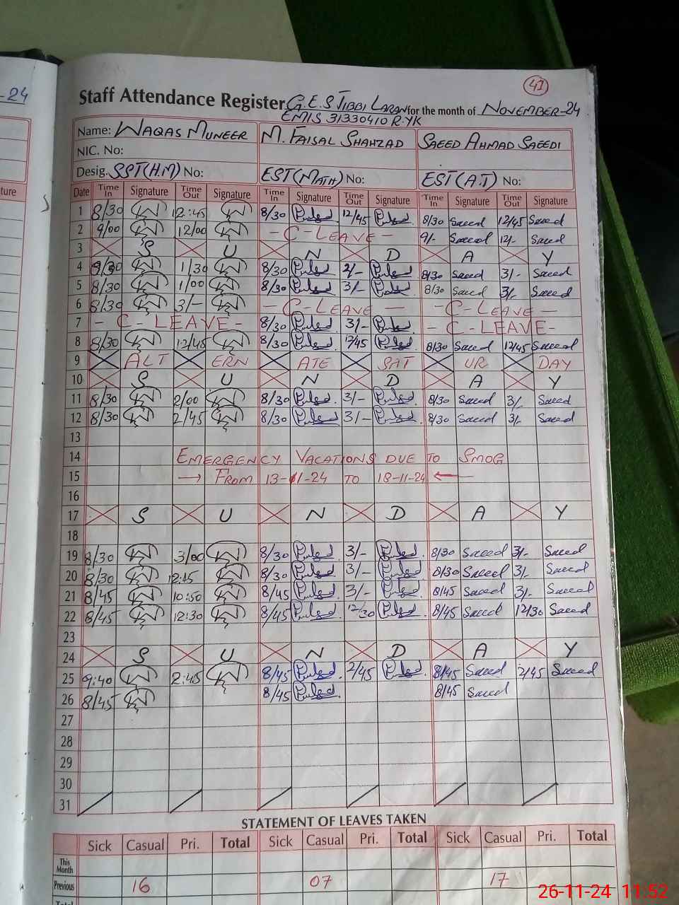 | Remarks (Use Separate Page if Required): Daily attendance of non teaching staff is not marked on SIS due to attendance option is not available in system | |||||