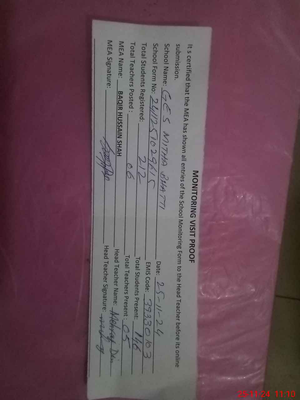 | EMIS Code: 39330103 | Name of School: GES MITHA BHATTI | |||