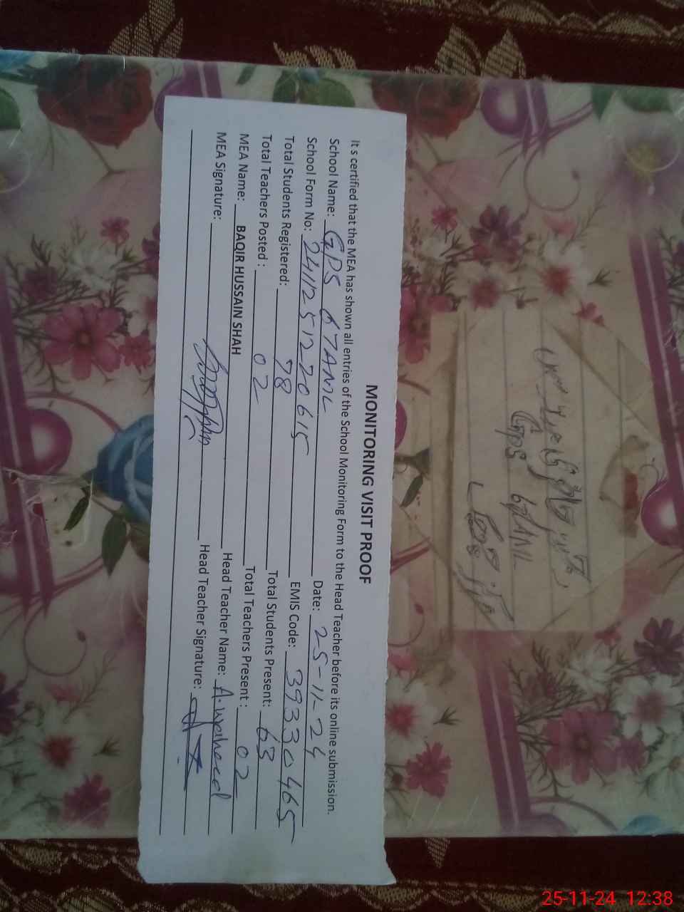 | Certified that this School was Inspected by the Undersigned MEA/DMO Today and the Information Stated Above is as Per Record. | |||||