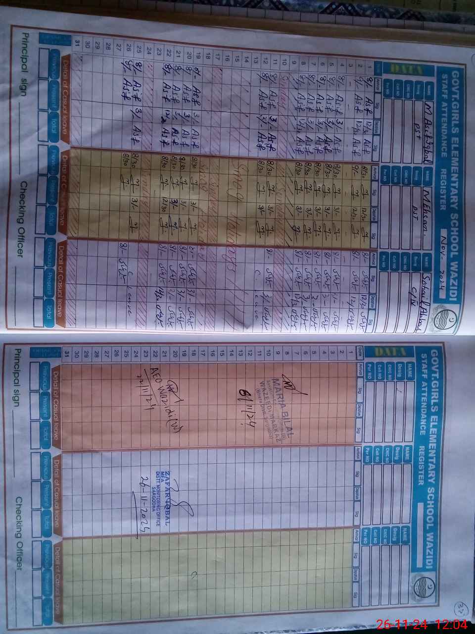 | CNIC | Full Name | Designation | R/C | Absence During Last Calender Month |