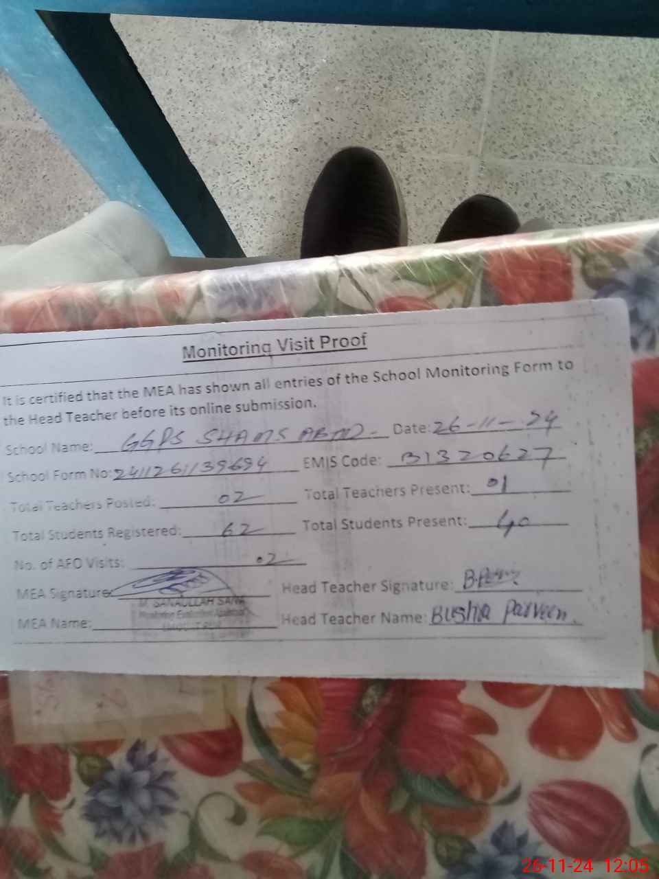 | EMIS Code: 31320627 | Name of School: GGPS SHAMSA ABAD | |||