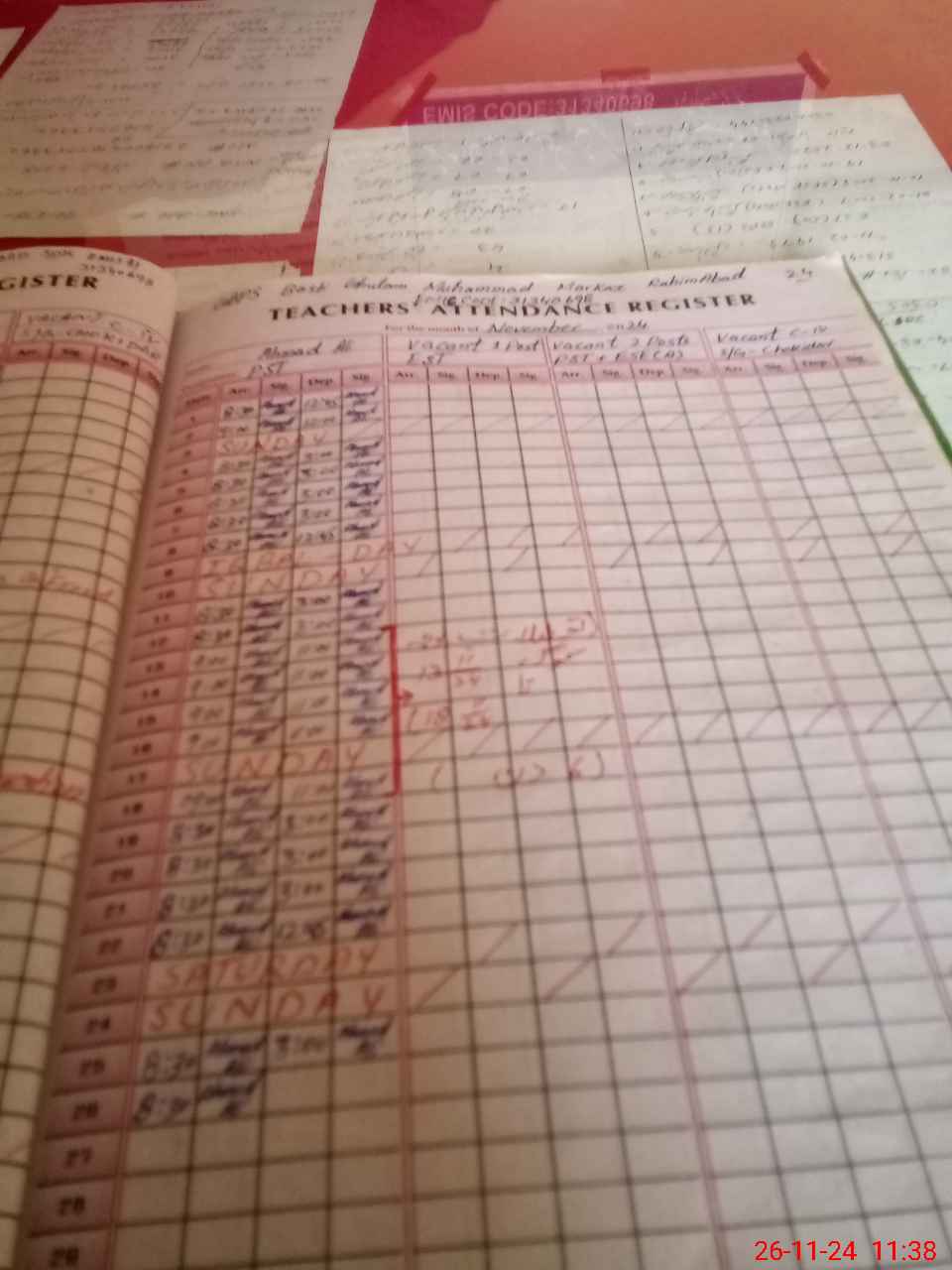 | Monitoring Date: 26-11-2024 | Start Time: 26-11-2024 11:36 AM | End Time: 26-11-2024 11:55 AM | Name of MEA: Mu**** Ak**** Ba**** | |