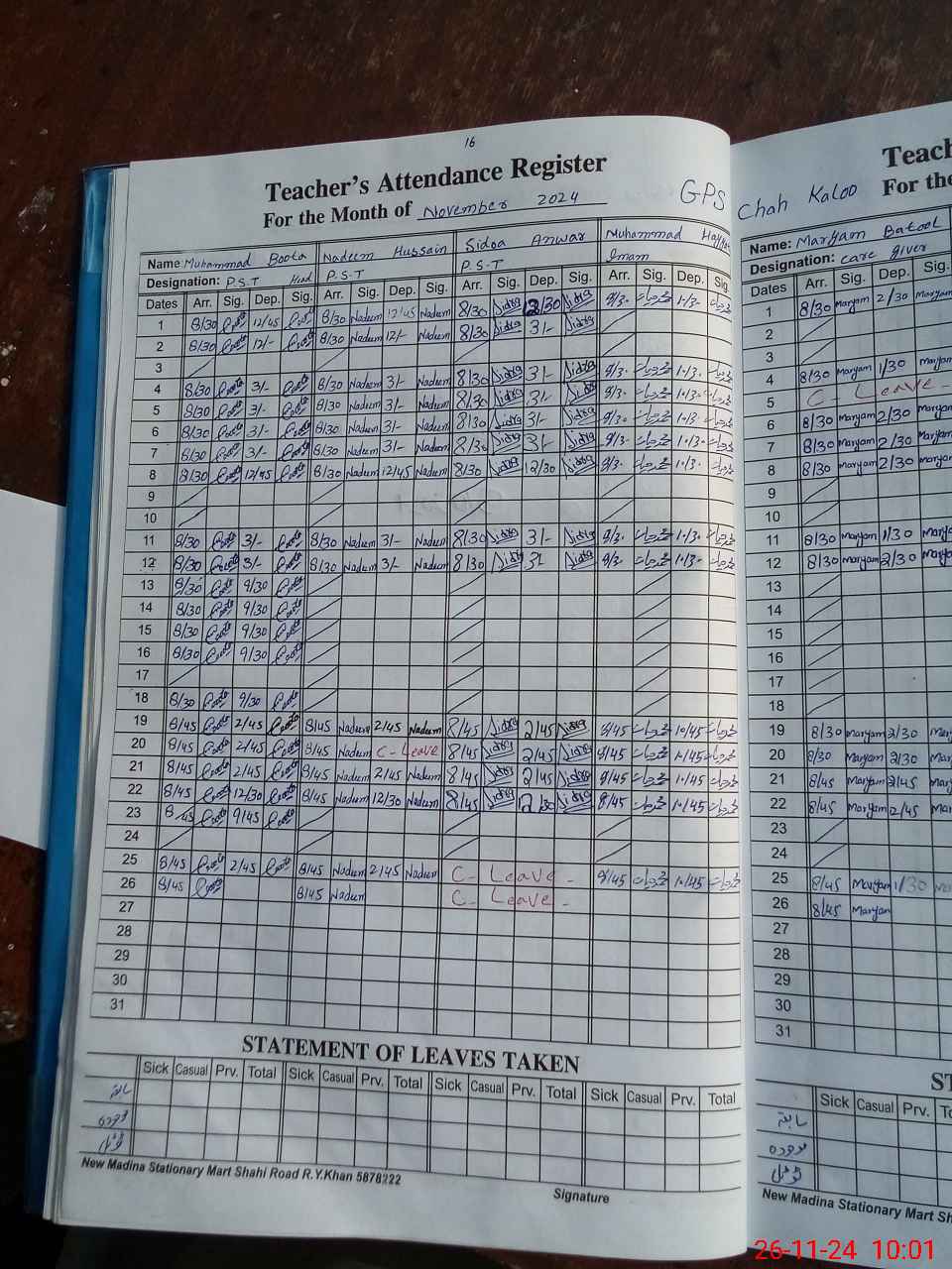 | Remarks (Use Separate Page if Required): Class verification is not updated on mea tab as per sis and teachers attendance updated on 26 11 2024 | |||||