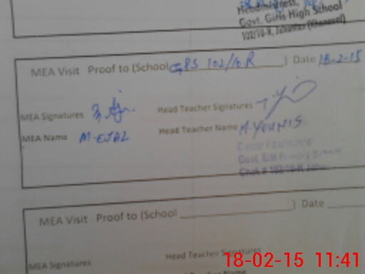 | Attendance Register | Head Teacher | MEA with School | Visit Proof |