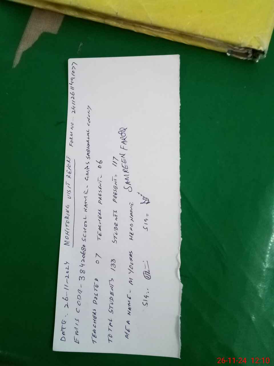 | Attendance Register | Head Teacher | MEA with School | Visit Proof |