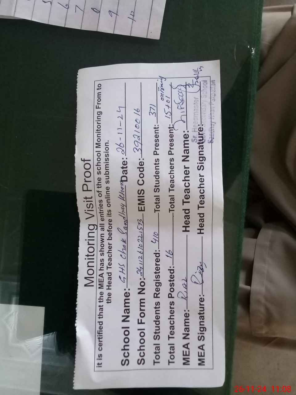 | EMIS Code: 39210016 | Name of School: GHS CHAK SANDHAY KHAN | |||