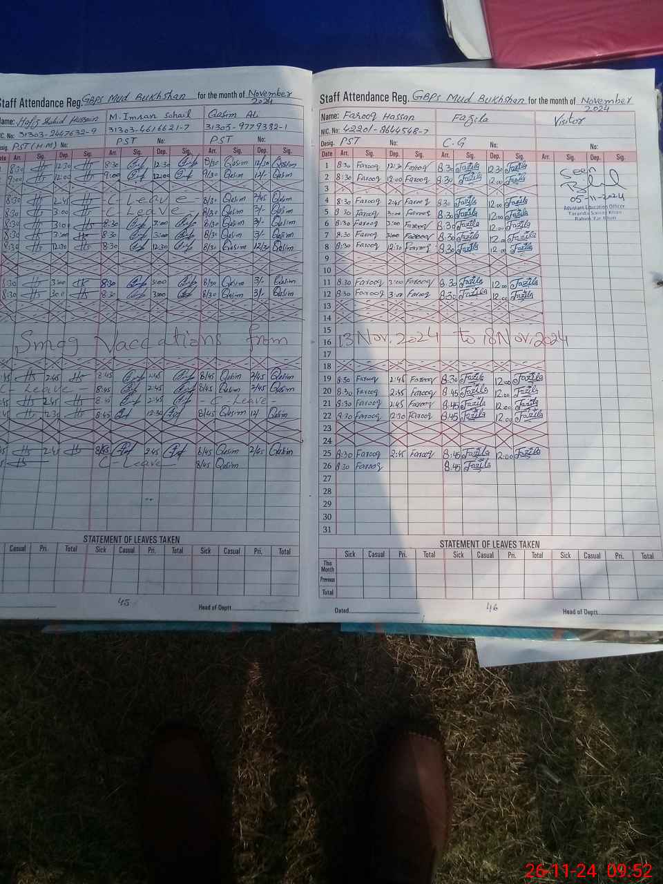 | Monitoring Date: 26-11-2024 | Start Time: 26-11-2024 09:21 AM | End Time: 26-11-2024 09:59 AM | Name of MEA: Kh**** Hu**** | |