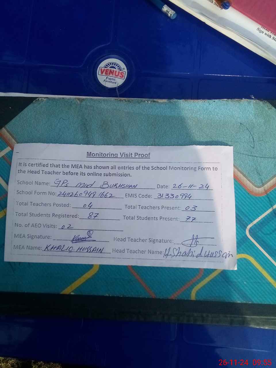 | EMIS Code: 31330994 | Name of School: GPS MUD BUKHSHAN | |||