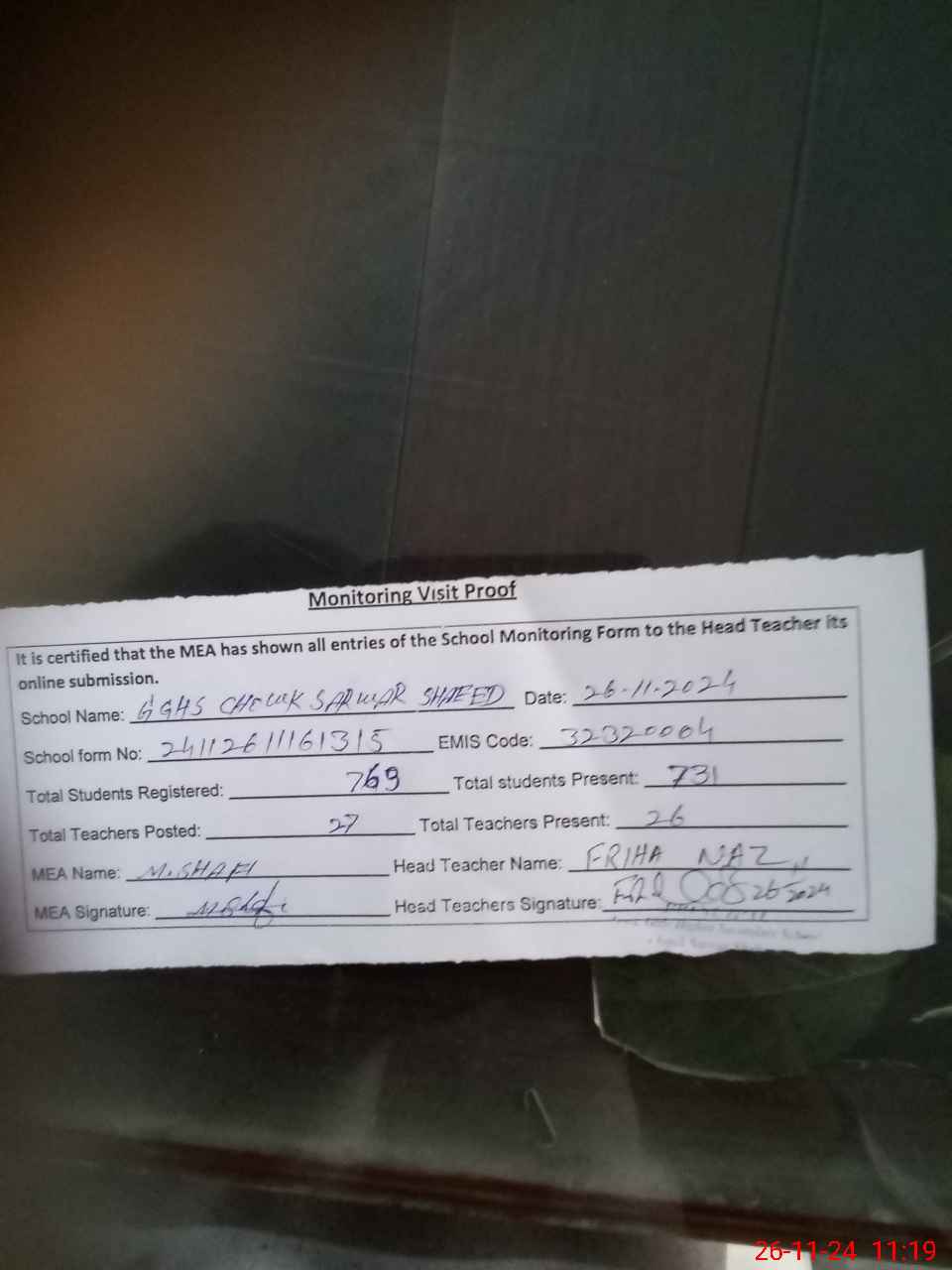 | EMIS Code: 32320004 | Name of School: GGHSS CHOWK SARWAR SHAHEED | |||