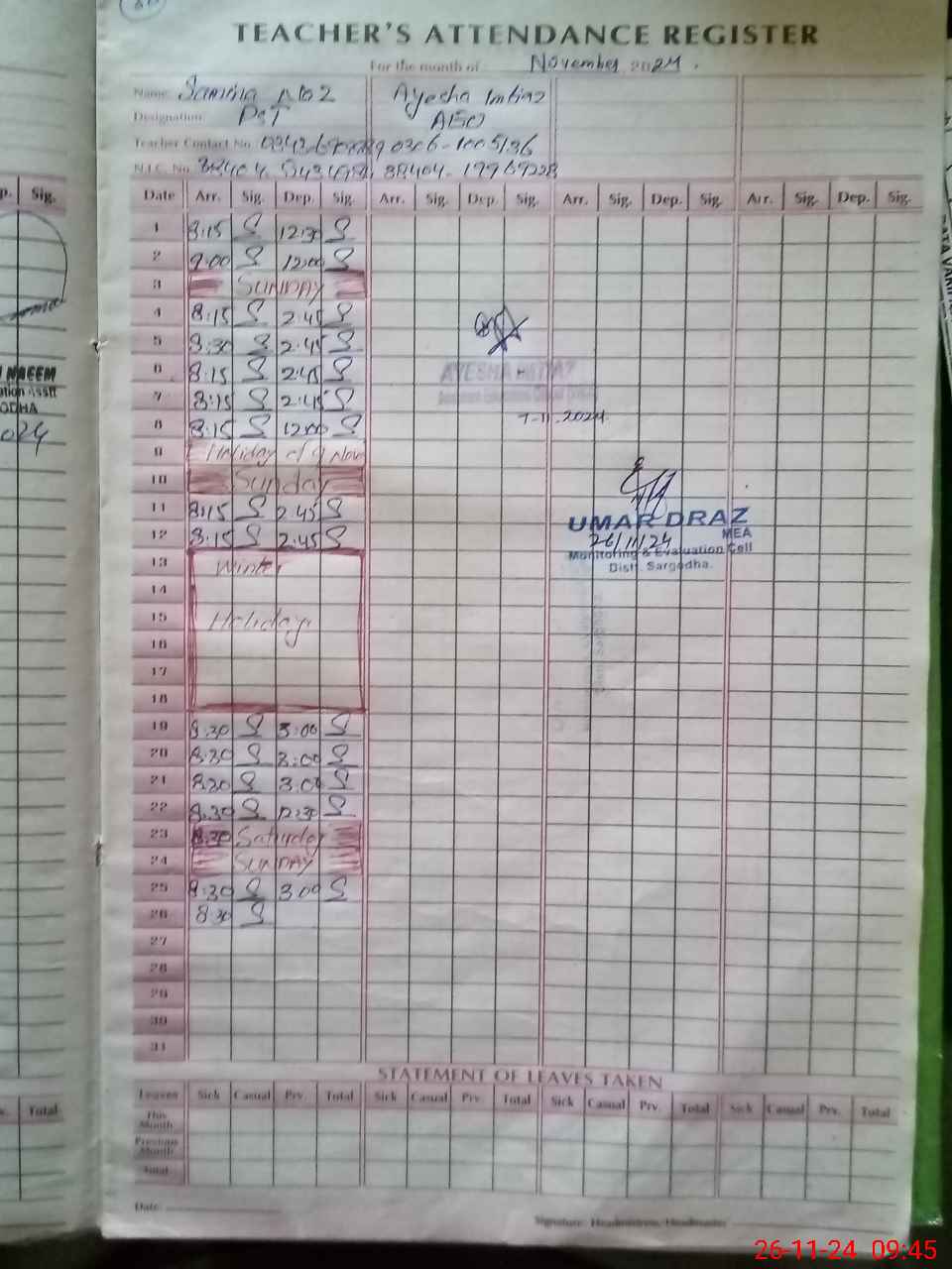 | Name: SA**** NA**** Designation: (School Headmaster's/Headmistress's) PST Phone/Cell Number: 03**** |