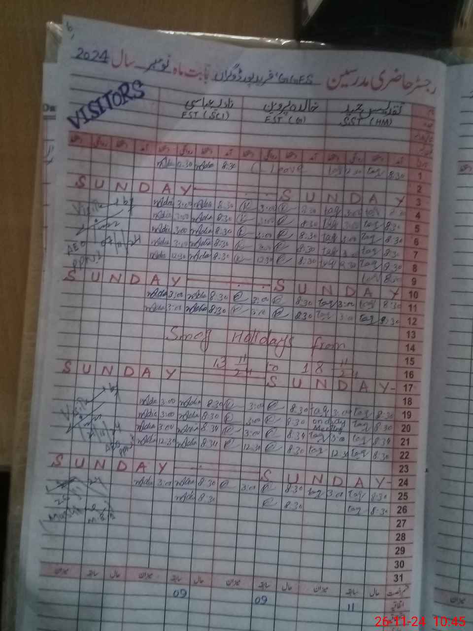 | Leave | Duty | Absent | Maternity | Medical | Ex- Pak |