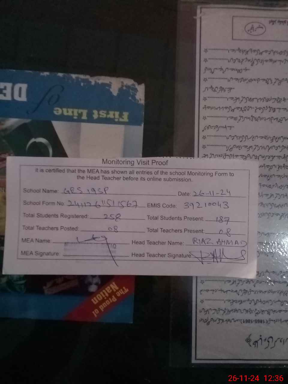 | Certified that this School was Inspected by the Undersigned MEA/DMO Today and the Information Stated Above is as Per Record. | |||||