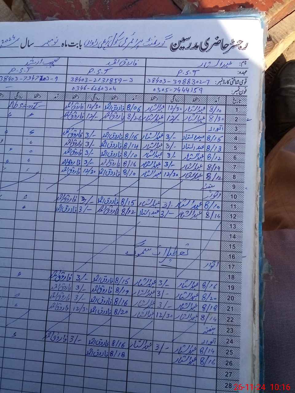 | Name: Ab**** Sa**** Designation: (School Headmaster's/Headmistress's) PST Phone/Cell Number: 03**** |