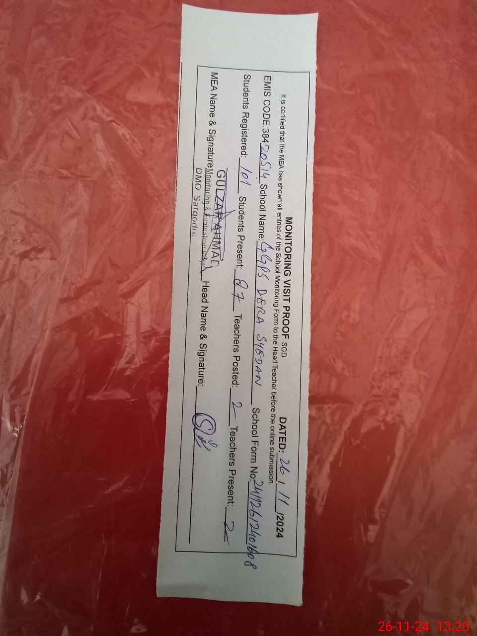 | EMIS Code: 38420514 | Name of School: GGPS DERA SYEDAN | |||
