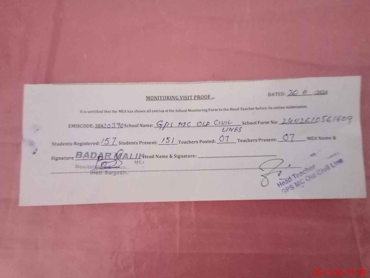 | EMIS Code: 38420390 | Name of School: GPS MC OLD CIVIL LINE SARGODHA | |||
