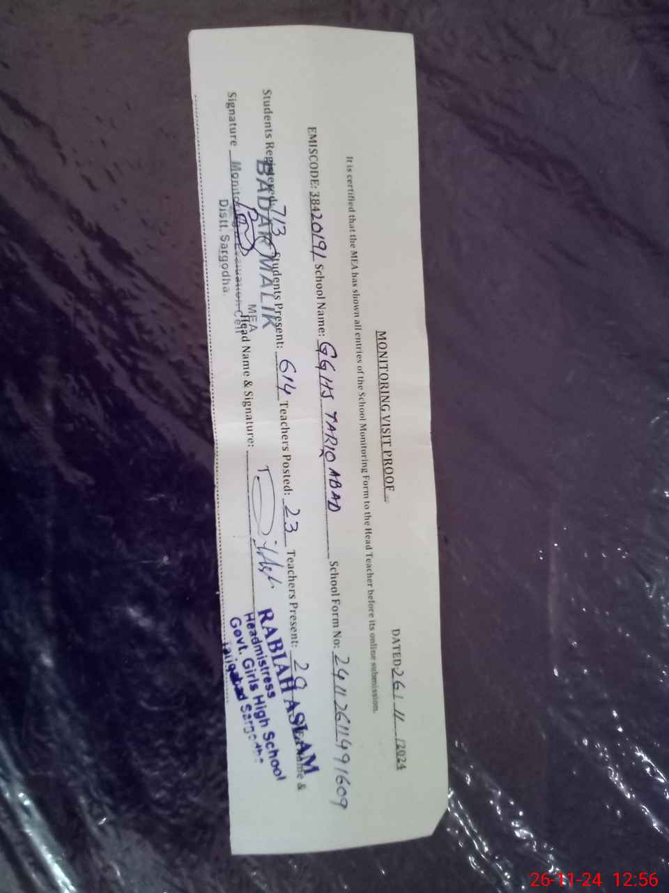 | EMIS Code: 38420191 | Name of School: GGHS TARIQ ABAD SARGODHA | |||