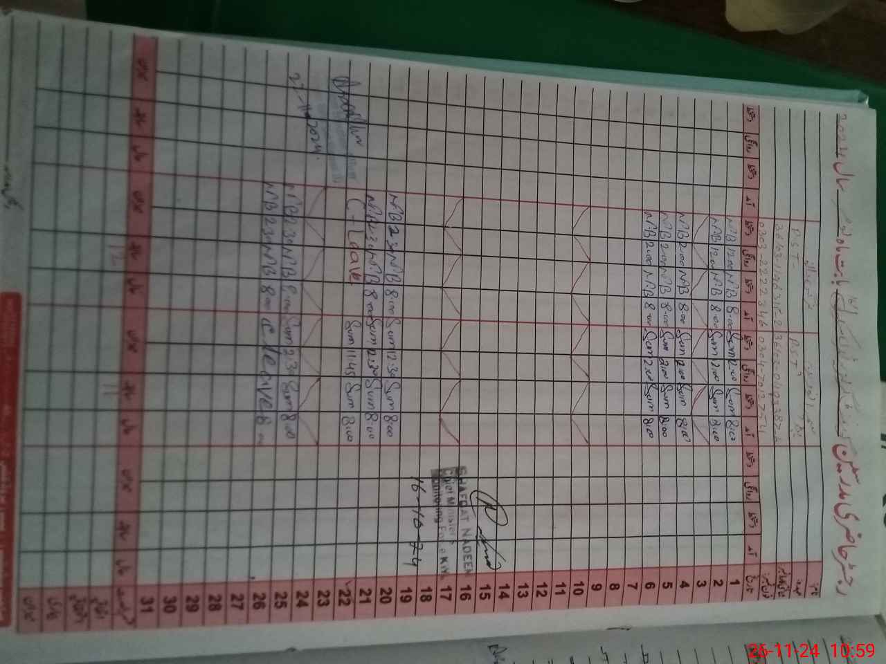 | CNIC | Full Name | Designation | R/C | Absence During Last Calender Month |