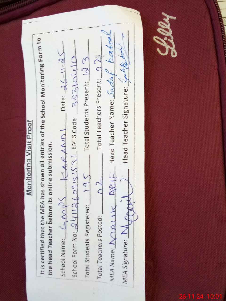 | EMIS Code: 38310410 | Name of School: GMPS KARANDI | |||