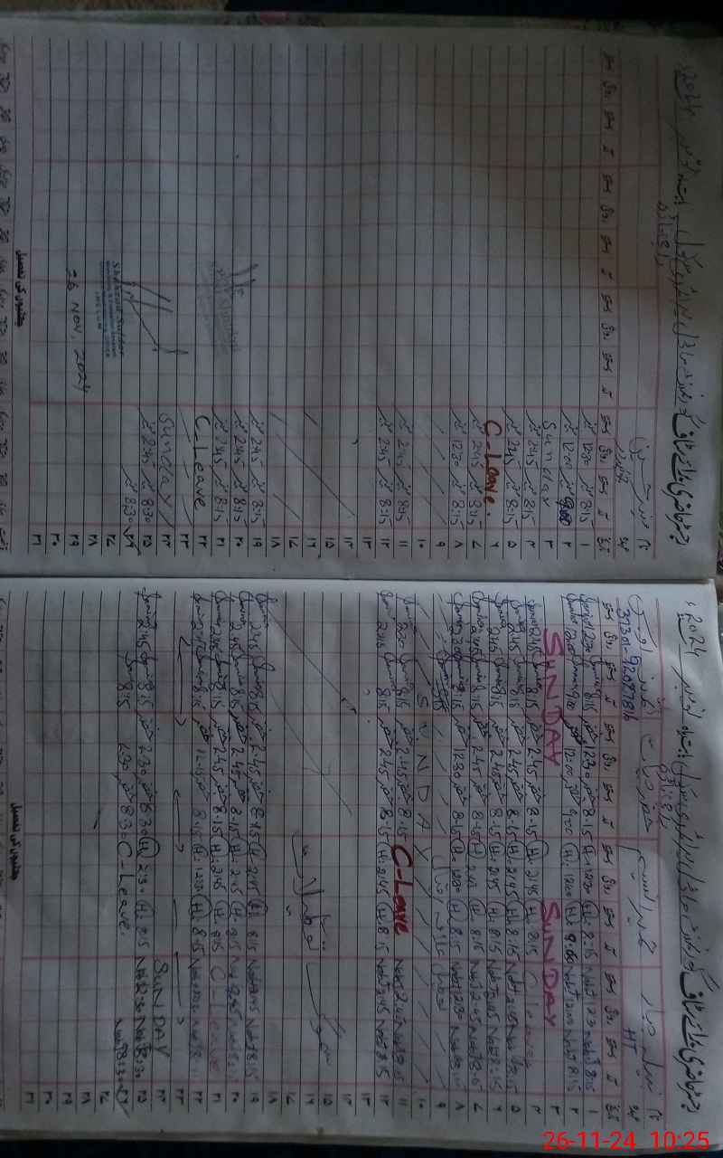 | CNIC | Full Name | Designation | R/C | Absence During Last Calender Month |