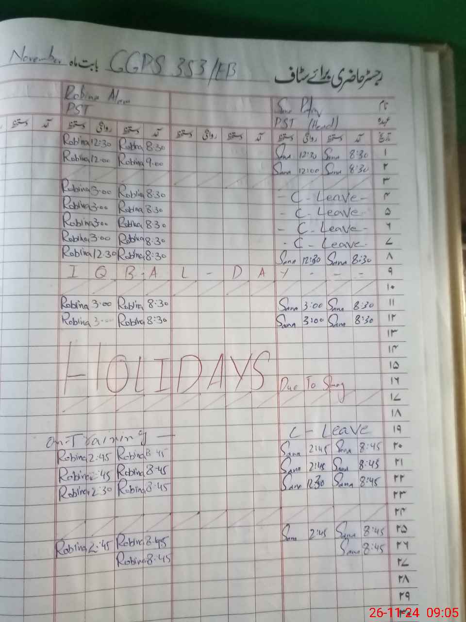 | 36**** | Na**** Na**** | PST | Regular | 30 | 0 | 0 | 30 | 0 | 0 | 0 | 0 | 0 | Maternity |