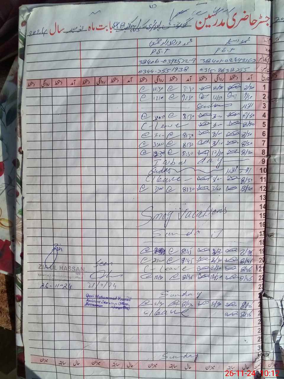 | Monitoring Date: 26-11-2024 | Start Time: 26-11-2024 09:40 AM | End Time: 26-11-2024 10:13 AM | Name of MEA: ZI**** ULHA**** | |