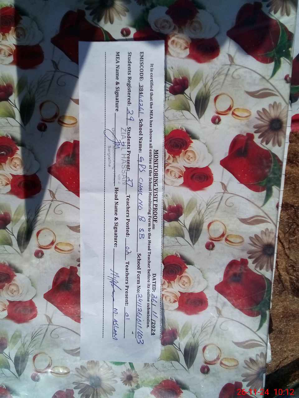 | Certified that this School was Inspected by the Undersigned MEA/DMO Today and the Information Stated Above is as Per Record. | |||||
