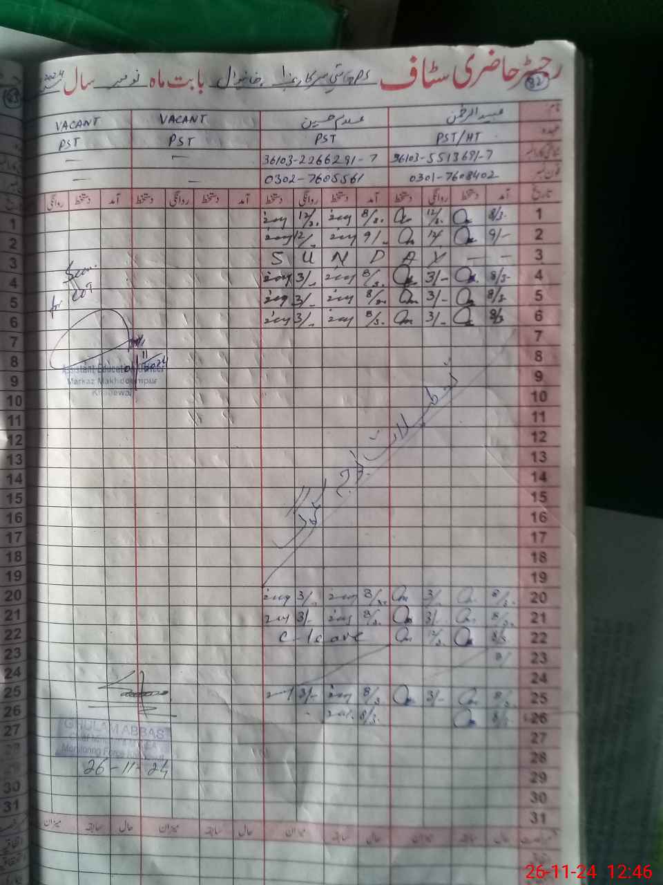 | Name: Ub**** UrRe**** Designation: (School Headmaster's/Headmistress's) PST Phone/Cell Number: 03**** |
