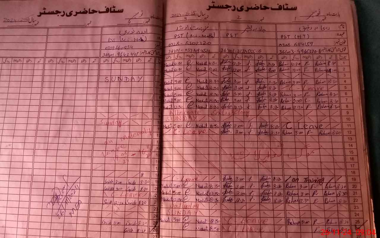 | CNIC | Full Name | Designation | R/C | Absence During Last Calender Month |