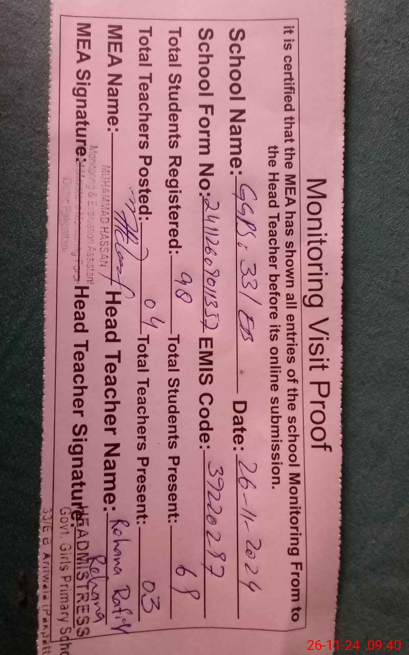| EMIS Code: 39220297 | Name of School: GGPS 33 EB | |||