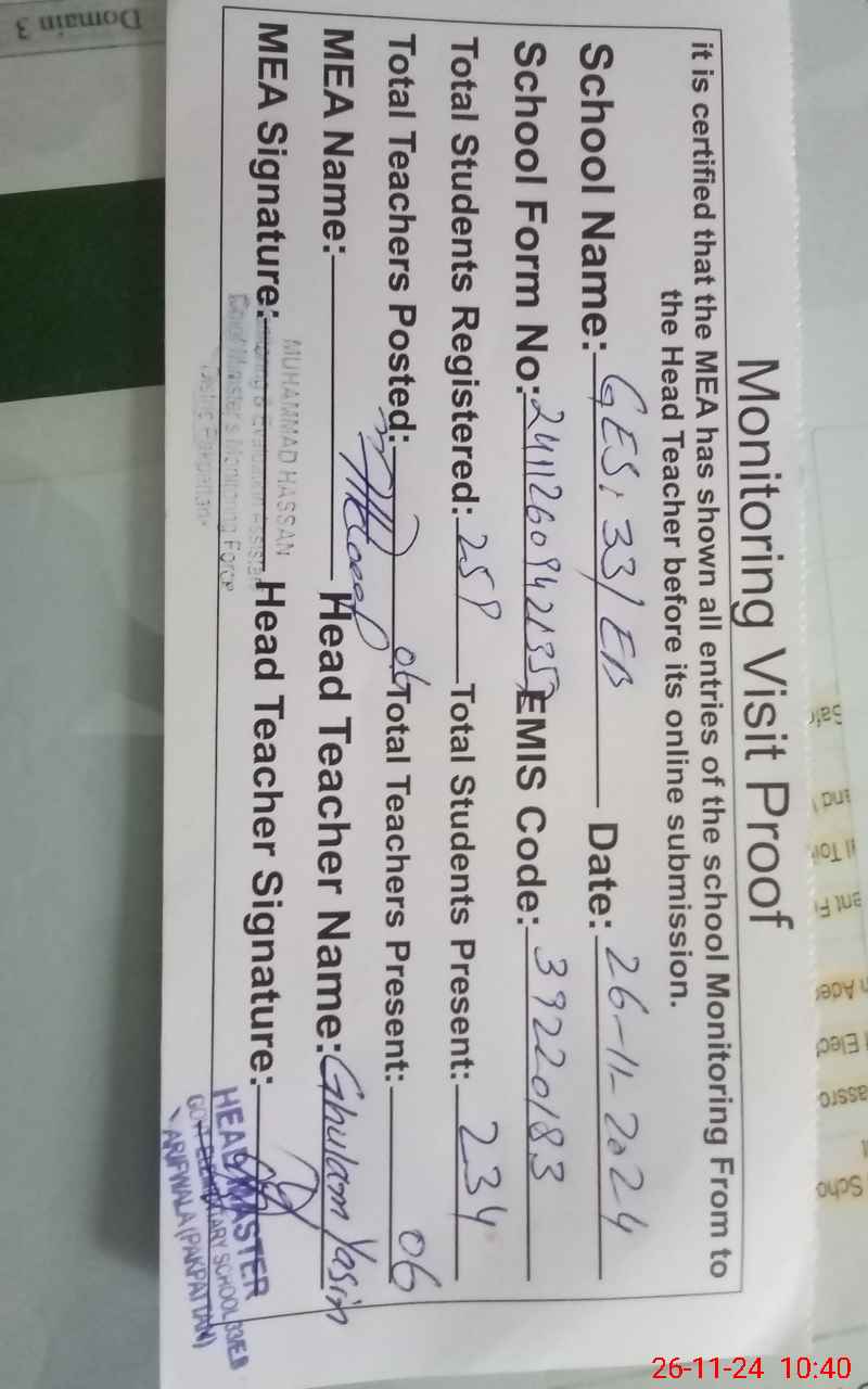 | EMIS Code: 39220183 | Name of School: GES 33 EB | |||
