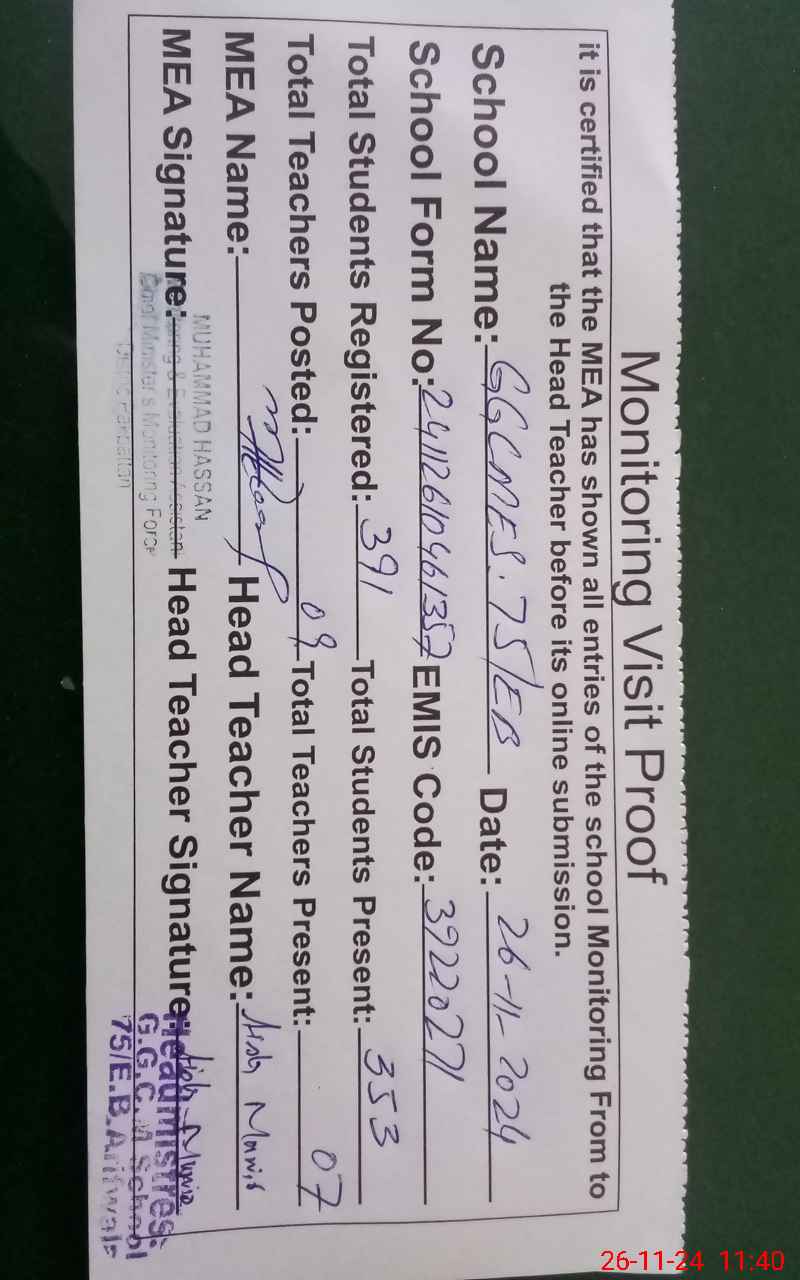 | Certified that this School was Inspected by the Undersigned MEA/DMO Today and the Information Stated Above is as Per Record. | |||||