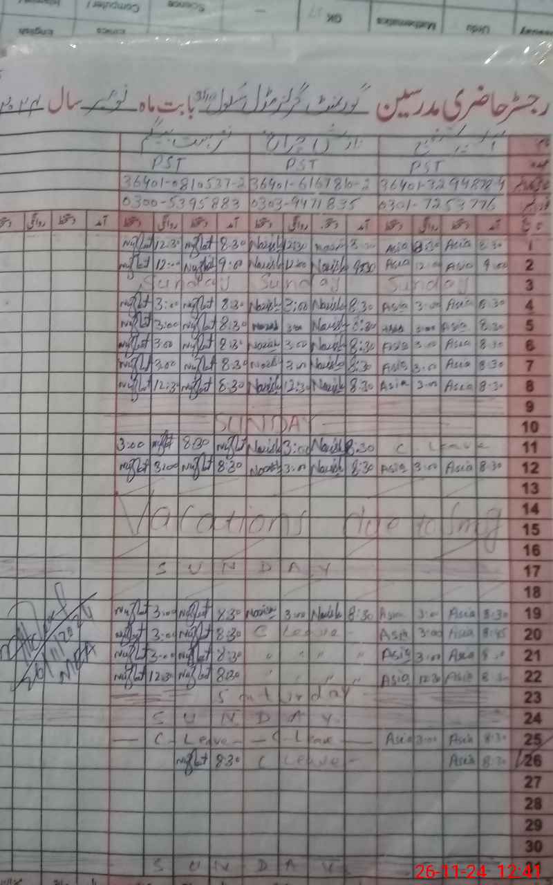 | Name: SH**** Designation: (School Headmaster's/Headmistress's) SST (GENERAL) Phone/Cell Number: 03**** |