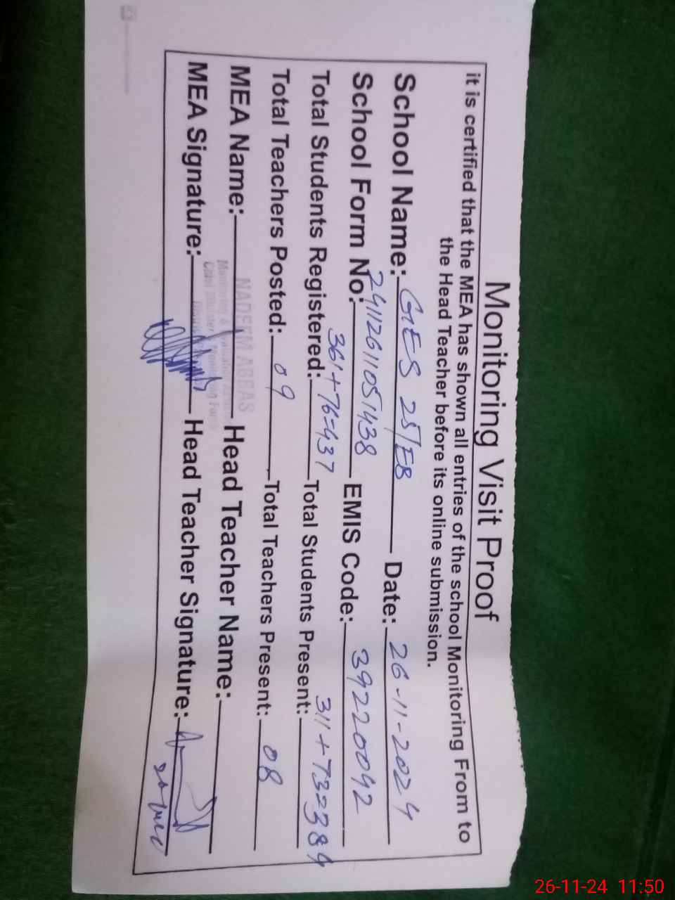 | EMIS Code: 39220042 | Name of School: GES CHAK NO. 25 / EB | |||