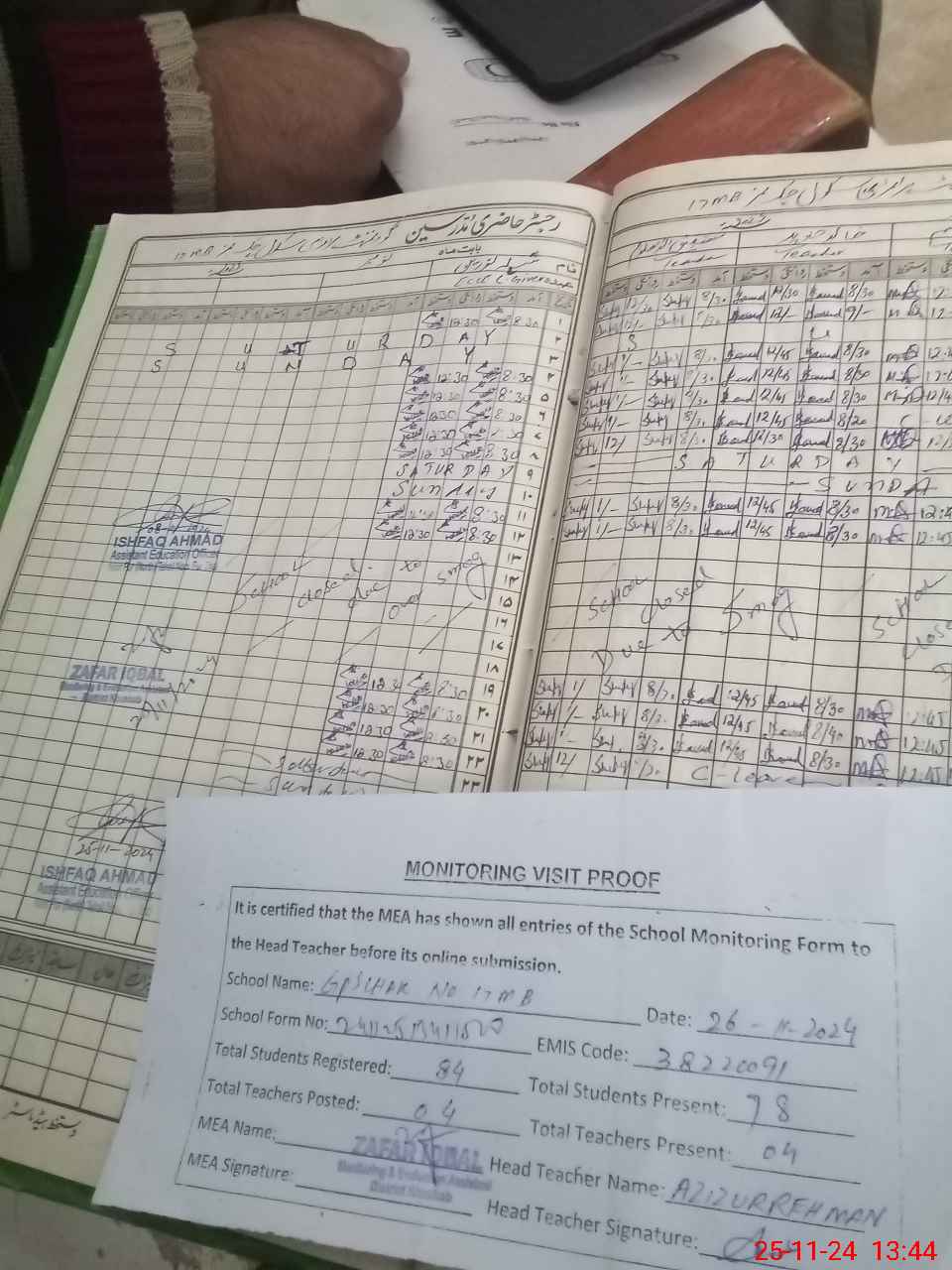 | Attendance Register | Head Teacher | MEA with School | Visit Proof |