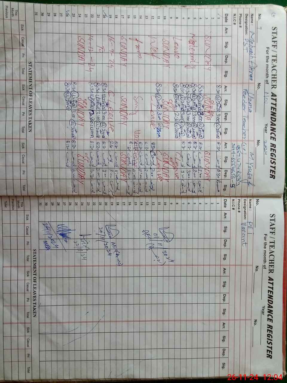 | 36**** | Me**** Ak**** | PST | Regular | 31 | 0 | 0 | 31 | 0 | 0 | 0 | 0 | 0 | Maternity |