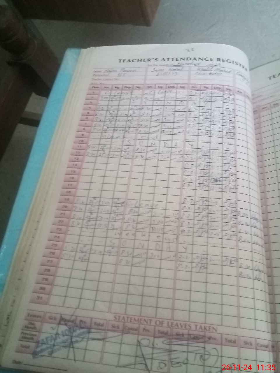 | No. of Students Present - Female | 4 | 0 | 20 | 27 | 30 | 38 | 32 | 28 | 50 | 38 | 40 | 40 | 40 | 387 | ||