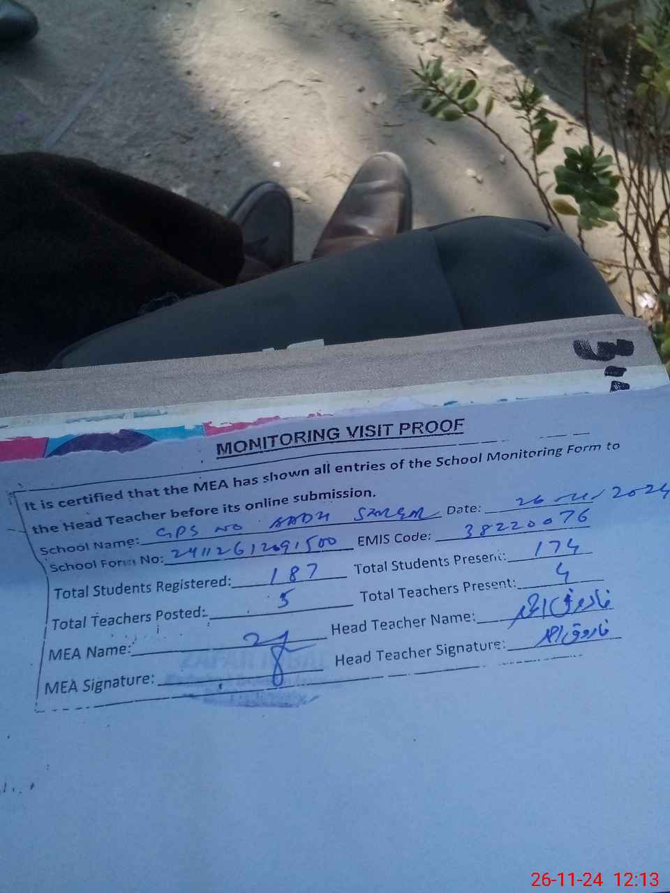 | Attendance Register | Head Teacher | MEA with School | Visit Proof |