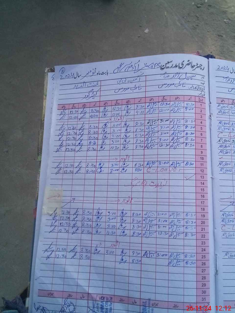 | CNIC | Full Name | Designation | R/C | Absence During Last Calender Month |