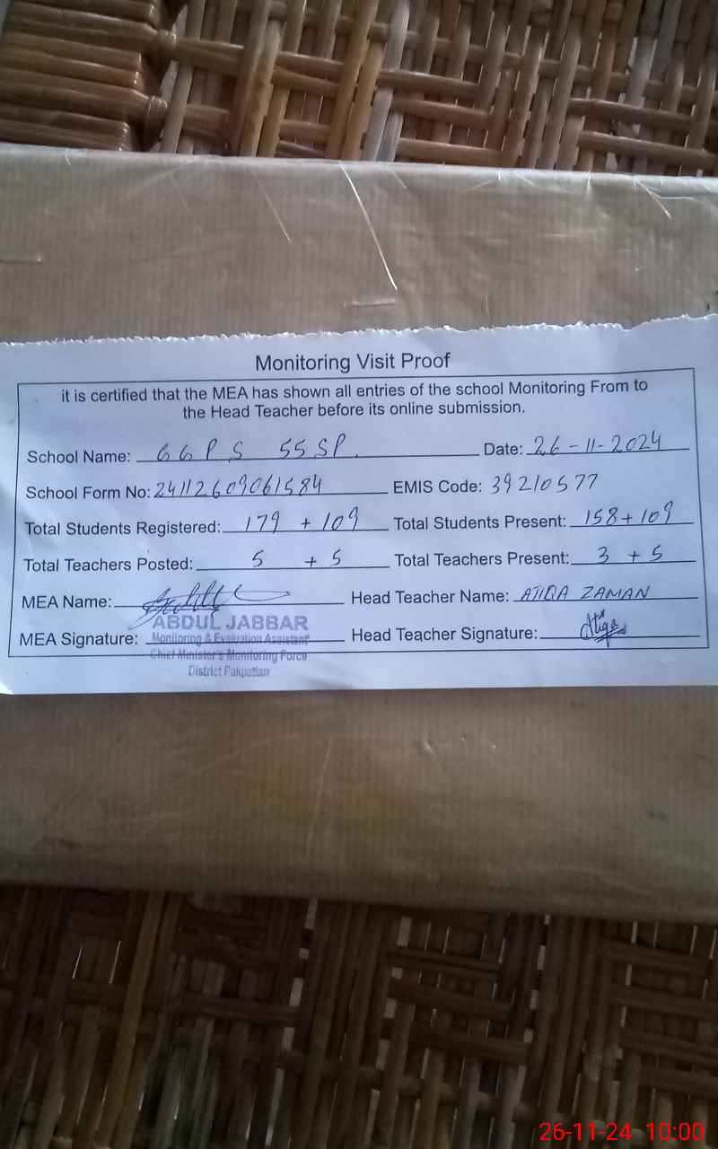 | EMIS Code: 39210577 | Name of School: Govt. Tufail Bibi Girls High School 55/SP | |||