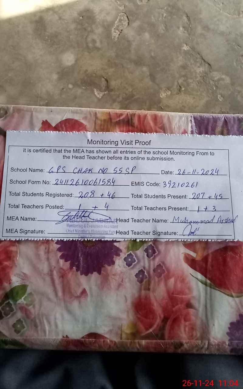 | EMIS Code: 39210261 | Name of School: GPS CHAK NO. 55 SP | |||